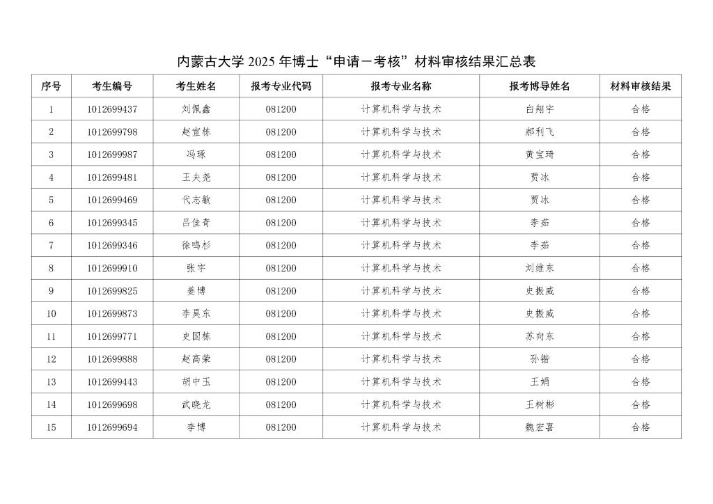 登录入口2025 年博士“申请-考核”材料审核结果汇总表