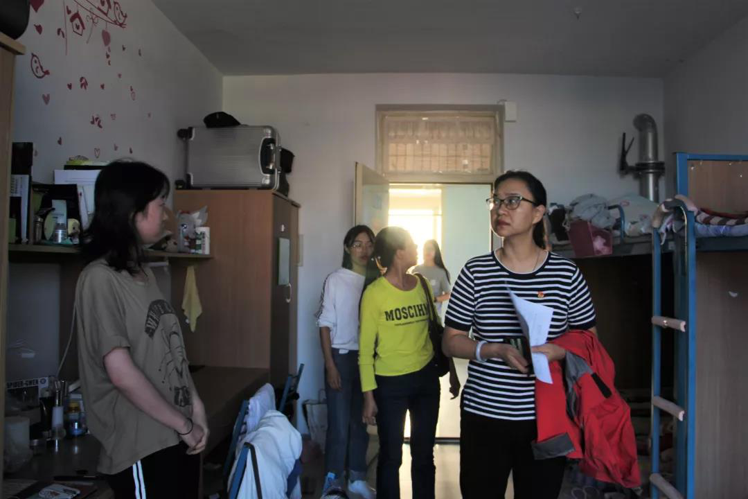 在走访过程中,黄翔书记、本科生各班班主任以及研究生辅导员分别前往各个宿舍,与学生亲切交谈,简单询问了同学们目前的学习情况,并建议同学们要合理规划学习和生活,不断争取进步。同时,各年级班主任们也就各个宿舍存在的卫生问题及安全隐患作出了明确说明,提醒同学们要改善宿舍环境,营造良好的学习与生活氛围,并对国庆节假期留校的学生们加强了安全教育。