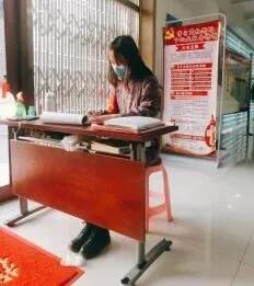 蔡淑香同学在寒假期间参与疫情防控工作,卡点执勤,登记出入人员并进行测温。