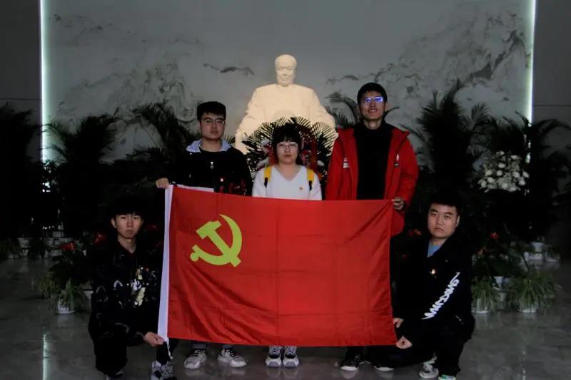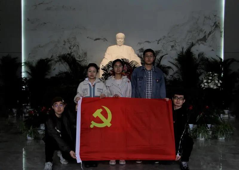 在参观完纪念馆后,学院党委书记黄翔同志带领全体党员面向党旗,重温入党誓词,大家举起右拳,庄严宣誓,对党忠诚,为共产主义事业奋斗终身。