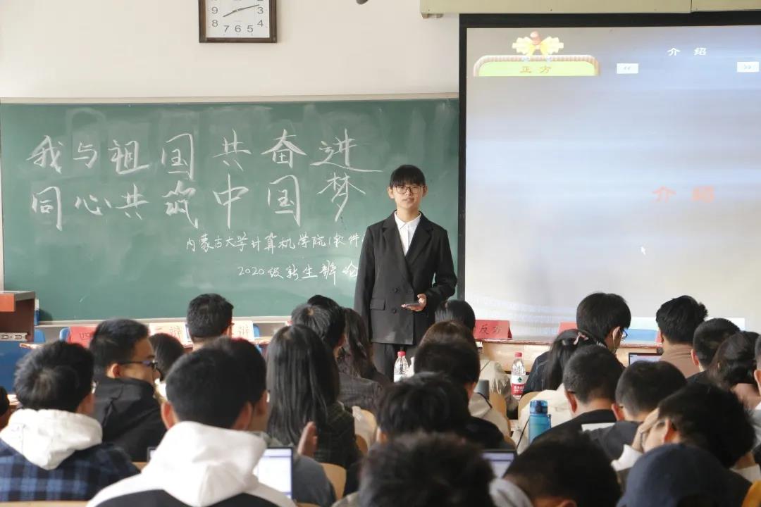 2020年10月3日上午8:00,登录入口(软件学院)2020级新生辩论赛在卓越楼201室举行。此次辩论赛主题为“我与祖国共奋进 同心共筑中国梦”,此次比赛由18级、19级优秀辩手担任评委。