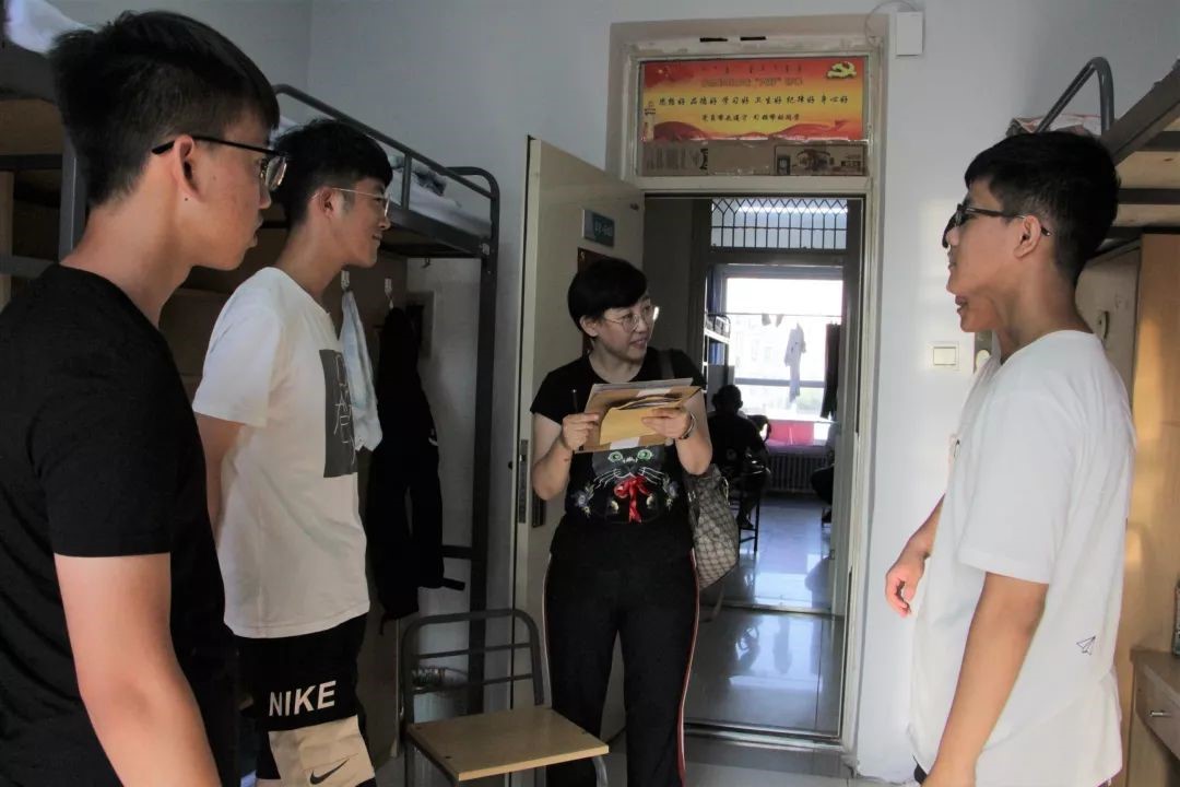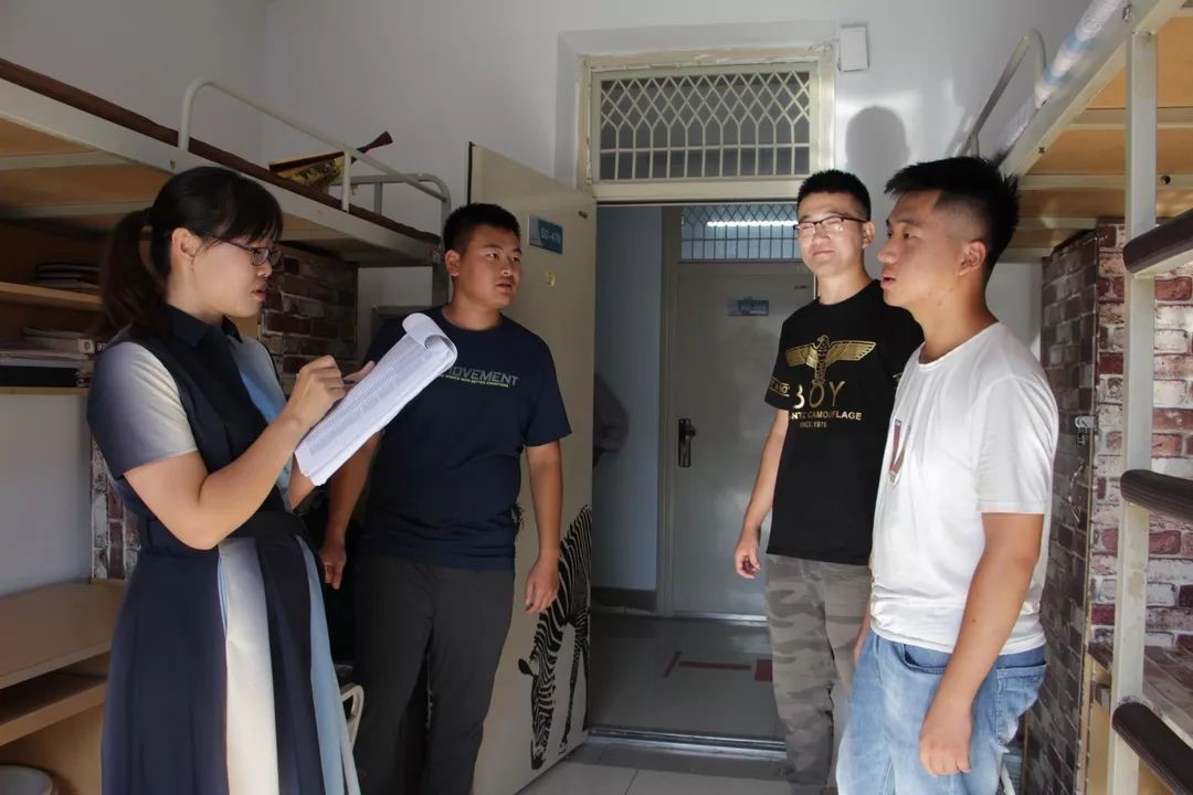 学期伊始,为了解新生在校住宿条件和生活状况,8月15日下午4:00,登录入口(软件学院)党总支书记黄翔、团总支书记兼学工办主任刘雪峰、辅导员赵琦及2019级各班班主任前往新生宿舍进行走访。