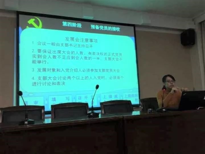 首先,主讲人赵晓茹就入党流程规范严谨的重要性做了介绍,接着,按照《中国共产党章程》和《中国共产党发展党员工作细则》中关于发展党员程序的具体规定,结合学院发展党员工作实际,详细讲解了发展党员程序,就每项流程中重点内容和注意事项做了强调说明。