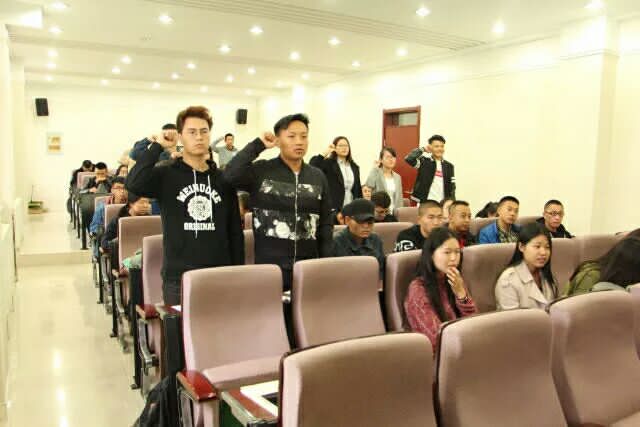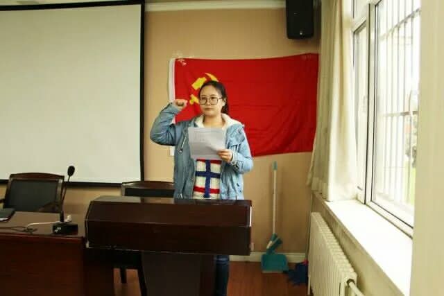会议开始,13名入党积极分子首先向组织汇报了自身的思想状况及入党动机。随后,到场全体党员就各积极分子是否能够转为预备党员的问题进行了讨论,并最终通过投票表决的形式决议通过了全体13位入党积极分子转为中共预备党员的申请。最后,支部全体成员在党旗下进行了庄严宣誓,向党表达了自己对党的坚定信念和为党的事业奋斗终身的决心。