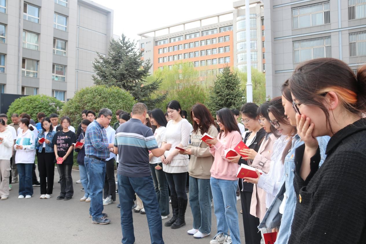为加强预备党员的党性教育,教育党员铭记入党誓言,牢记党的宗旨,增强党员意识,发挥党员的先锋模范作用。学院党委于418日下午在赛罕校区东院学生公寓2号楼前举行新党员入党宣誓仪式。学院党委书记黄翔、学院副院长孙涛、学院党委组织员张献国、退休教师党员王玉清及65名新入党的预备党员参加,入党宣誓仪式由学院副院长赵俊峰主持。