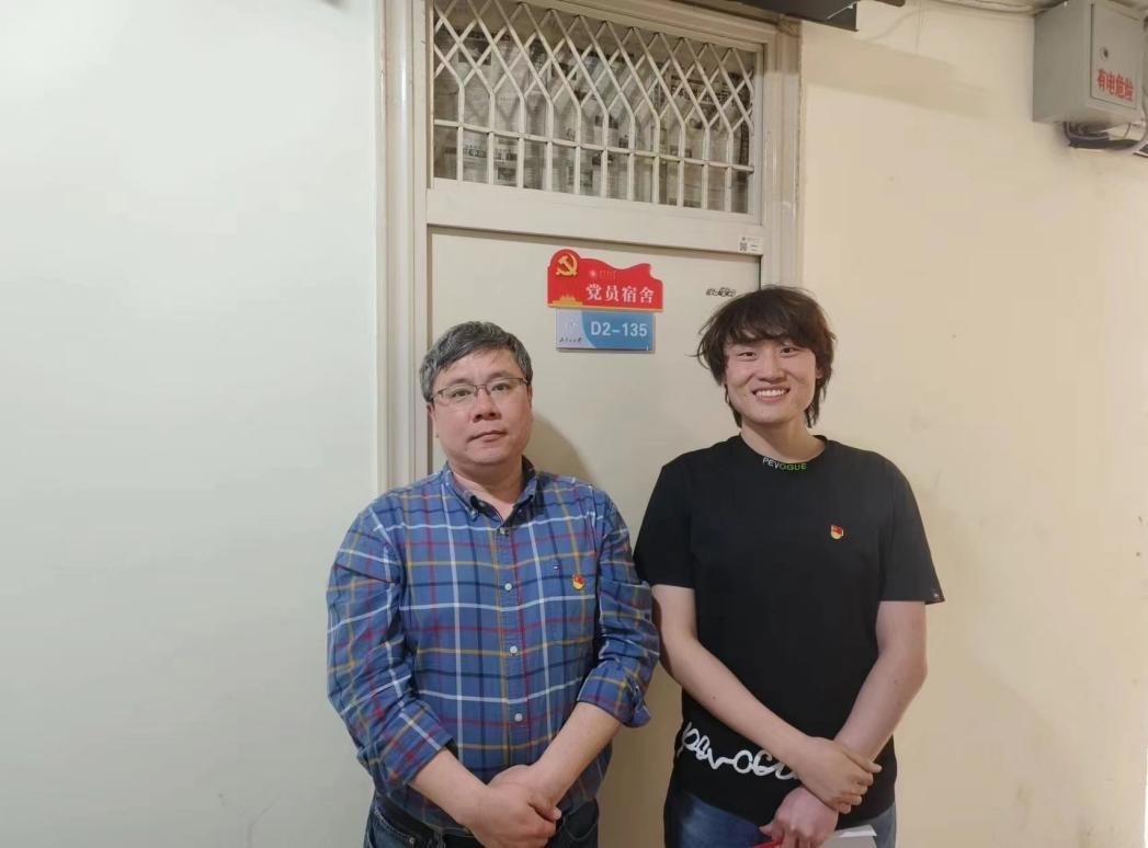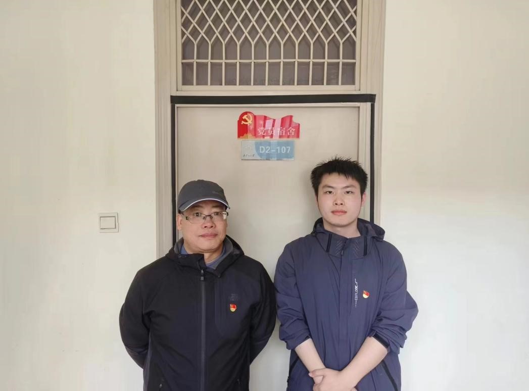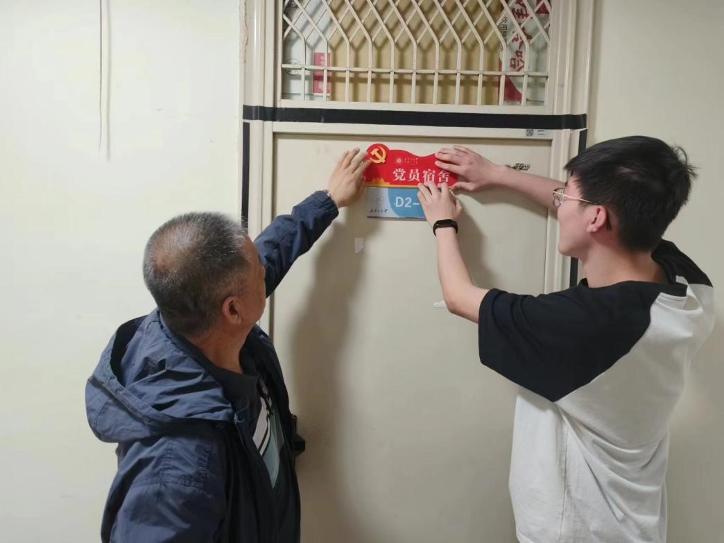 在入党宣誓仪式结束后,院领导为部分党员宿舍代表亲自张贴“党员宿舍”铭牌,并深入宿舍与同学们进行了亲切谈话、交流。