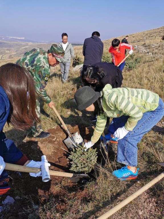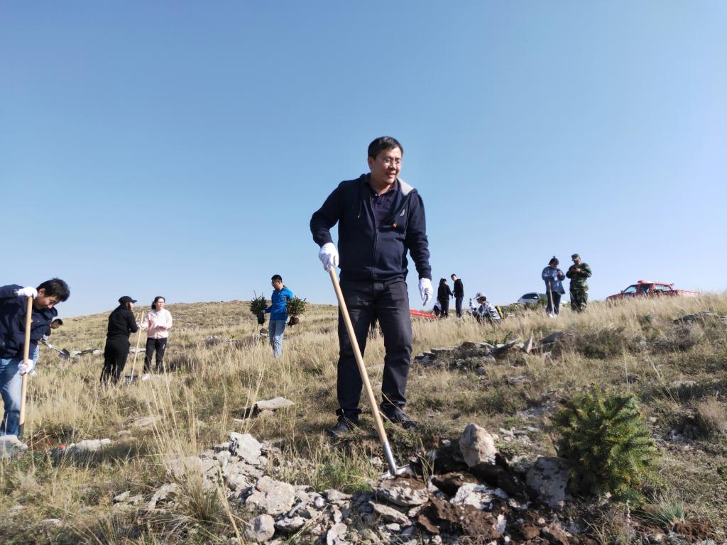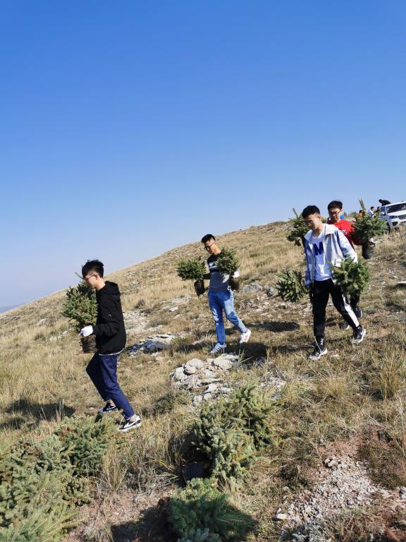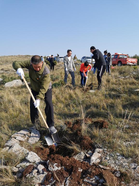 9月28日,登录入口党总支书记黄翔、院长周建涛及副院长赵俊峰、孙涛带领教工和学生党员到大青山参加公益植树。在植树前,参加公益植树的47名教工、学生党员面对党旗,重温了入党誓词。之后,在县林业局技术人员的指导下,47名教工、学生党员“守初心、担使命”,不怕苦不怕累,严格按照树木种植标准和规范,挥锹挖土培土,精心种植了100棵油松。
