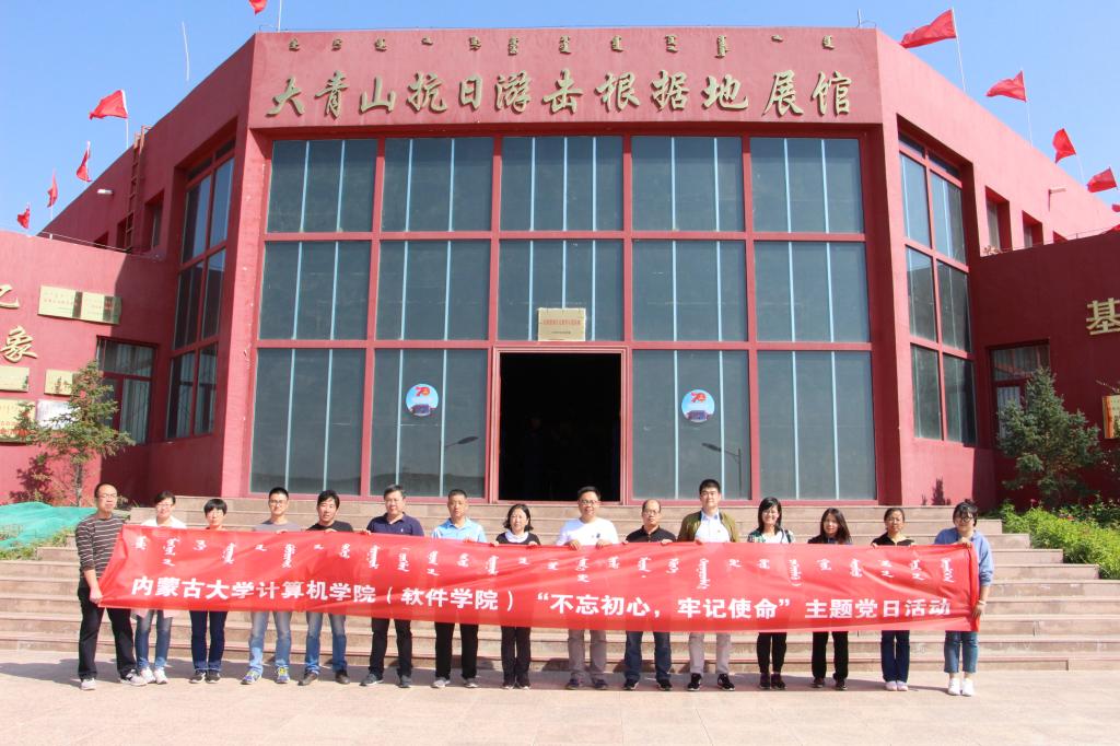 中华人民共和国成立70周年前夕,为了深入学习贯彻习近平总书记新时代中国特色社会主义思想,丰富支部活动内容,扎实开展好“不忘初心、牢记使命”主题教育,2019年9月28日下午,登录入口(软件学院)党总支书记黄翔、副院长赵俊峰、孙涛带领教工和学生党员到大青山抗日游击根据地展馆参观学习。